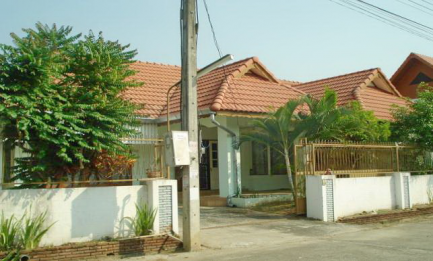 House for rent on Maejo - Outer Ring Rd., 2.5 km. from Tesco Lotus San Sai branch, 1 air condition, 1 hot shower, 2 bedrooms with furniture, dining room set, living room set, 2 houses in the same compound.