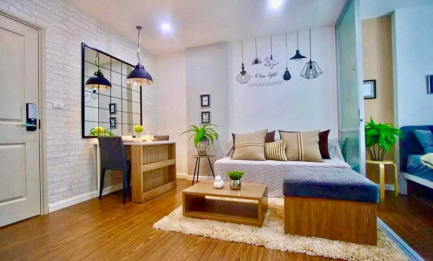 #ดีพิงค์คอนโดมิเนียม ใกล้เซ็นทรัลเฟสติวัล - 1 ห้องนอน กั้นกระจกห้องรับแขก, 1 ห้องน้ำ - พื้นที่ห้อง 30 ตร.ม. ชั้น 2 - เครื่องปรับอากาศ, เครื่องทำน้ำอุ่น - พร้อมเฟอร์นิเจอร์ * ภายในโครงการมี สระว่ายน้ำ รปภ.