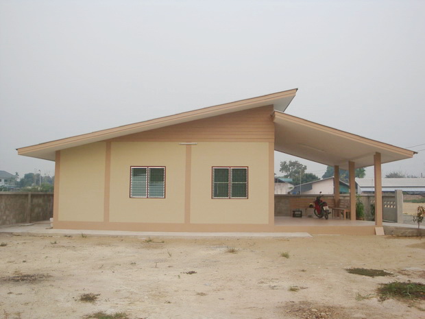 House for rent on Maejo - Outer Ring Rd., 2.5 km. from Tesco Lotus San Sai branch, 1 air condition, 1 hot shower, 2 bedrooms with furniture, dining room set, living room set, 2 houses in the same compound.